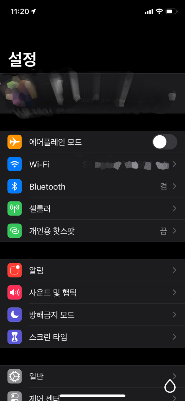 1. 설정→000(설정이름)Apple Id, iCloud, iTunes 및