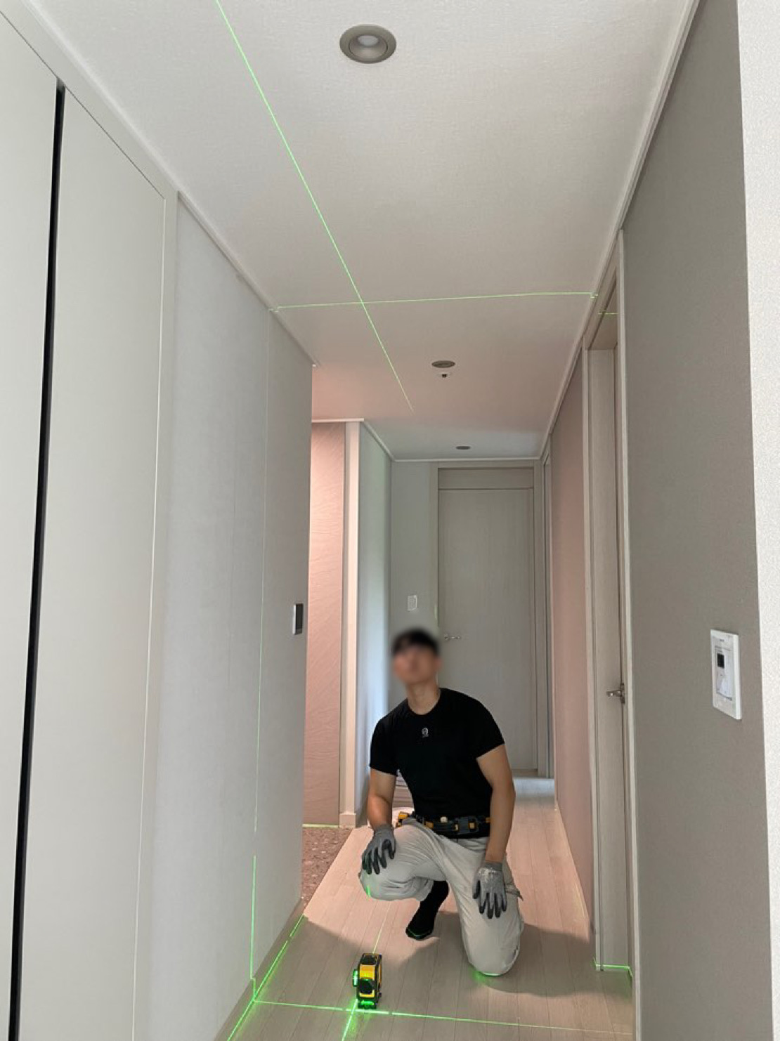 사진에서 보시면 처음부터 꼼꼼하게 보시고 오차범위내에서 완벽하게 기준을 잡은 다음 시공을 해주셨습니다