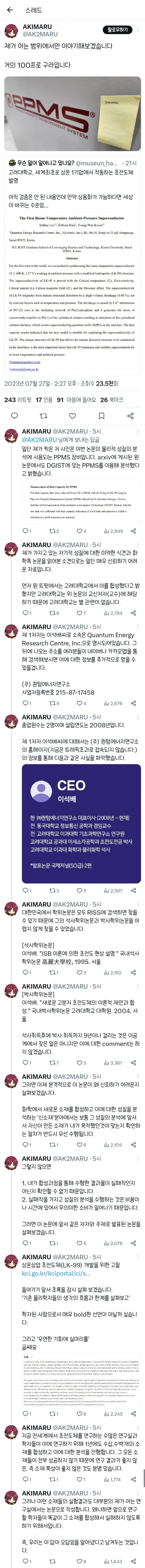 아래는 이번 lk99와 관련하여 매우 구체적으로 저격하는 글인데 너무 구체적이라 가져 왔어요