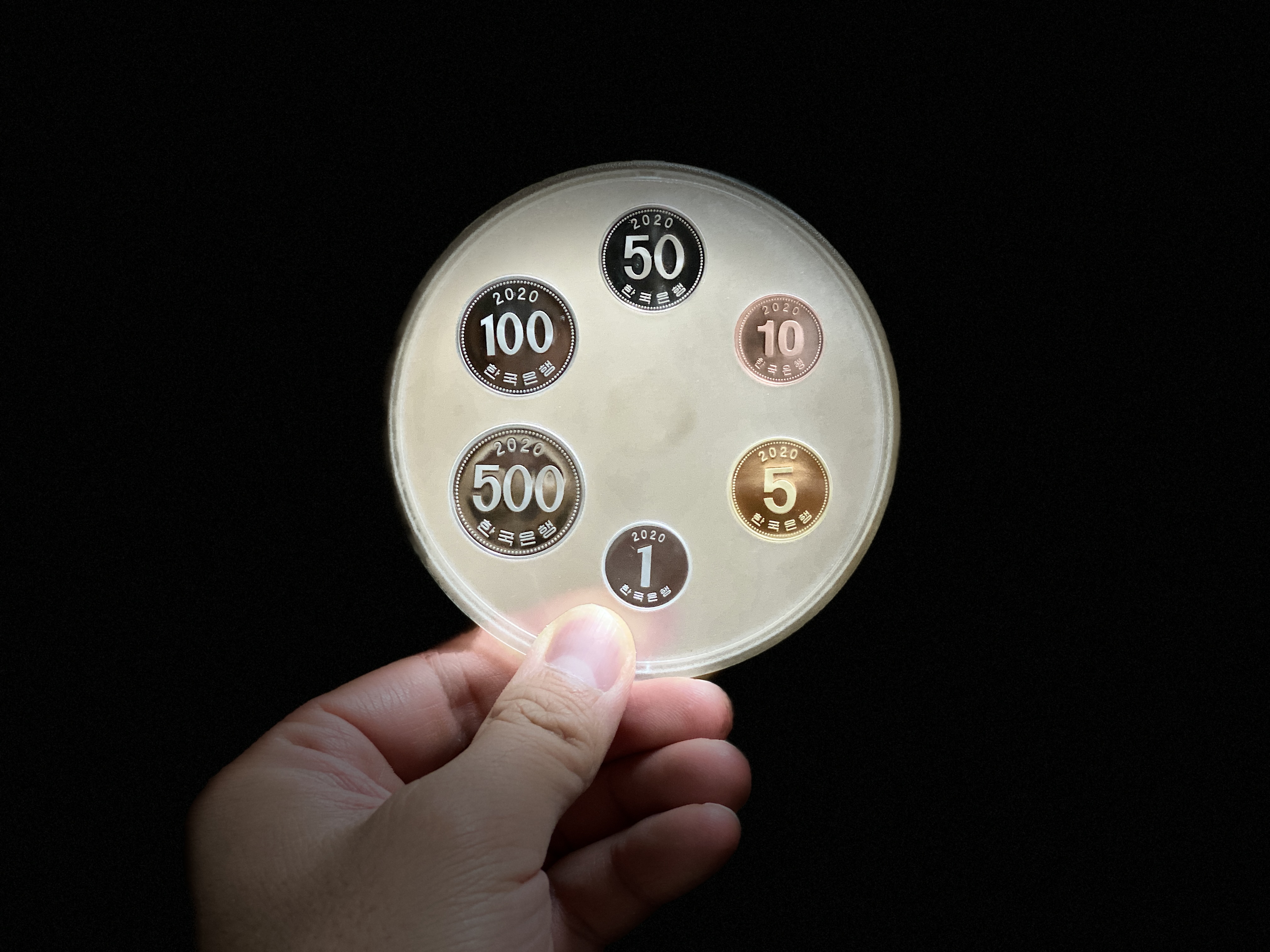 근데 저는 처음 동전을 봤을 때 파란색으로 배경이
